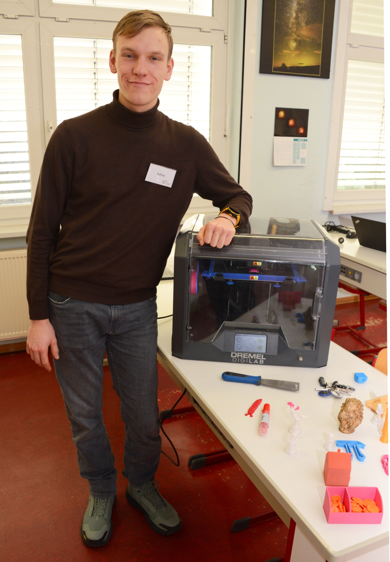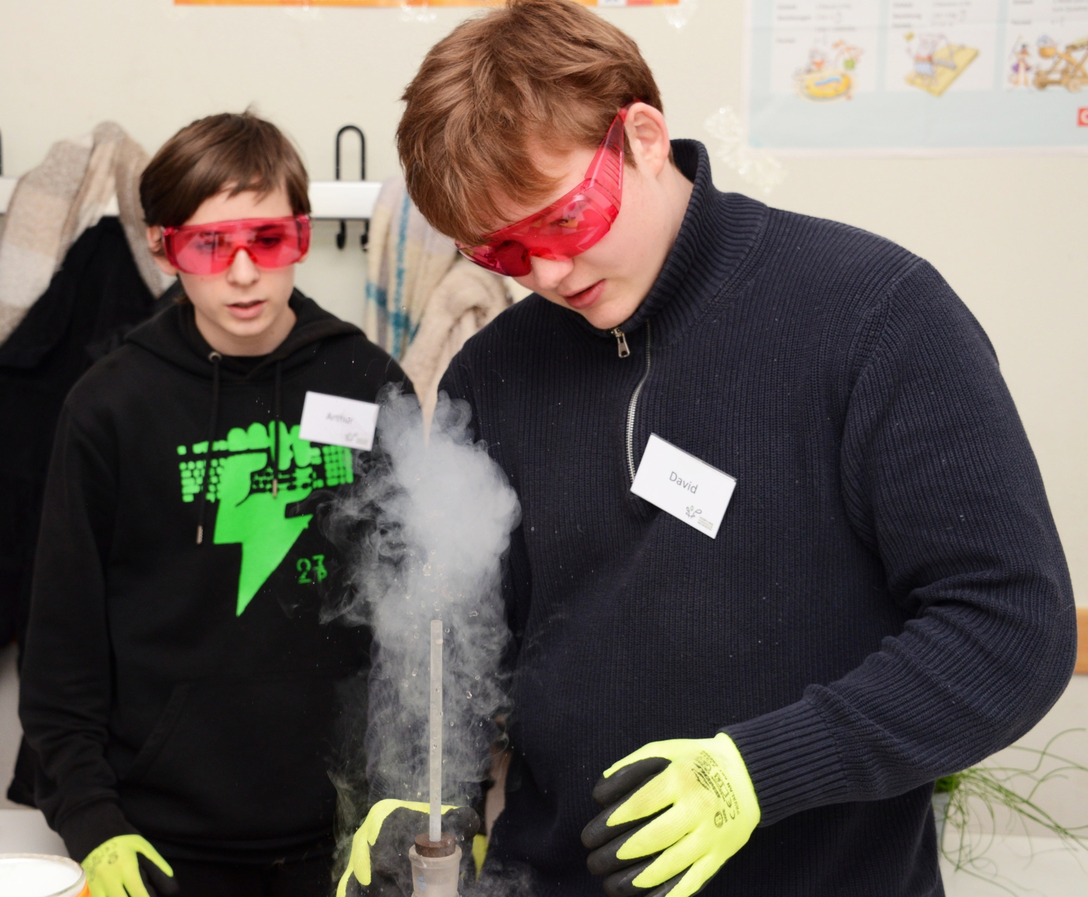 In der Chemie staunten die Besucher über Thermitexplosionen und verwandelten Kupfermünzen in „Silber und Gold“. Die Biologie faszinierte mit Mikroskopen und Lavalampen, während die Physik und Informatik mit Stickstoffversuchen, 3D-Druck und Lego-Robotik die Brücke zur Zukunft schlugen. Auch die Geographie machte Phänomene greifbar: Explodierende Vulkane, anschauliche Versuche zur Entstehung von Wind und Tsunamis, Modelle zur Gebirgsbildung sowie Experimente zur Gletscherschmelze sorgten für Staunen und viele Aha-Momente.