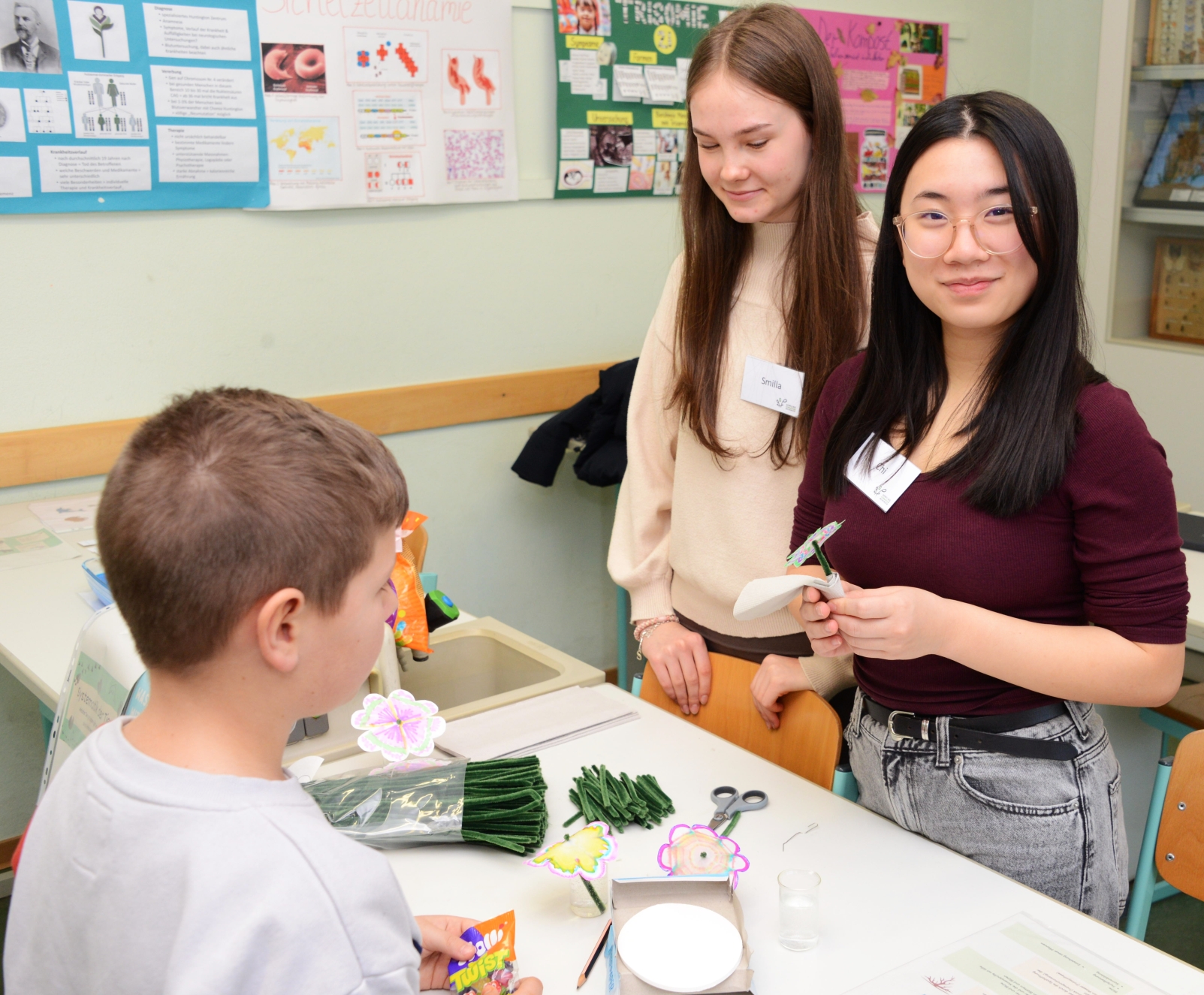 In den Fachbereichen Musik, Kunst und Darstellen und Gestalten konnten Instrumente probiert, Mandalas gestaltet und beim „Klein gegen Groß“-Quiz die eigene Bühnentauglichkeit getestet werden.